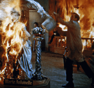 Com a visita do respeitável crítico de arte Sidney Wallace, fascinado pela beleza das obras, Jarrod, em comum acordo com Burke, resolve oferecer a ele a parte do sócio. Porém como Wallace estava com viagem marcada, essa resposta sobre a compra de metade da sociedade só seria dada em três meses. Movido pela ganância e pela necessidade imediata de dinheiro, Burke resolve então que a melhor saída é queimar todas as estátuas e a galeria e conseguir com isso uma bolada do seguro. É claro que Jarrod é contra destruir toda a obra de sua vida, e os dois tem uma terrível briga, onde Burke por fim incendeia as estátuas e o local e deixa Jarrod para ser consumido pelas chamas.
